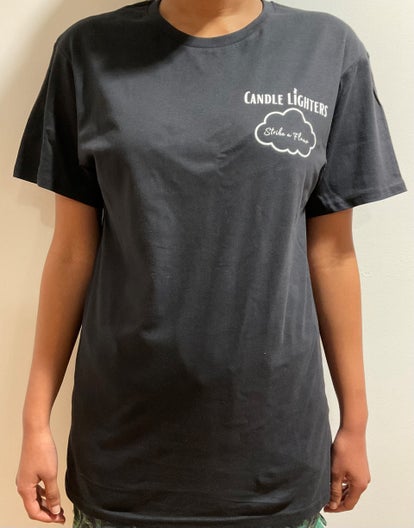 Black cotton T-shirt with the "Candle Lighters: Strike a Flame" inscription